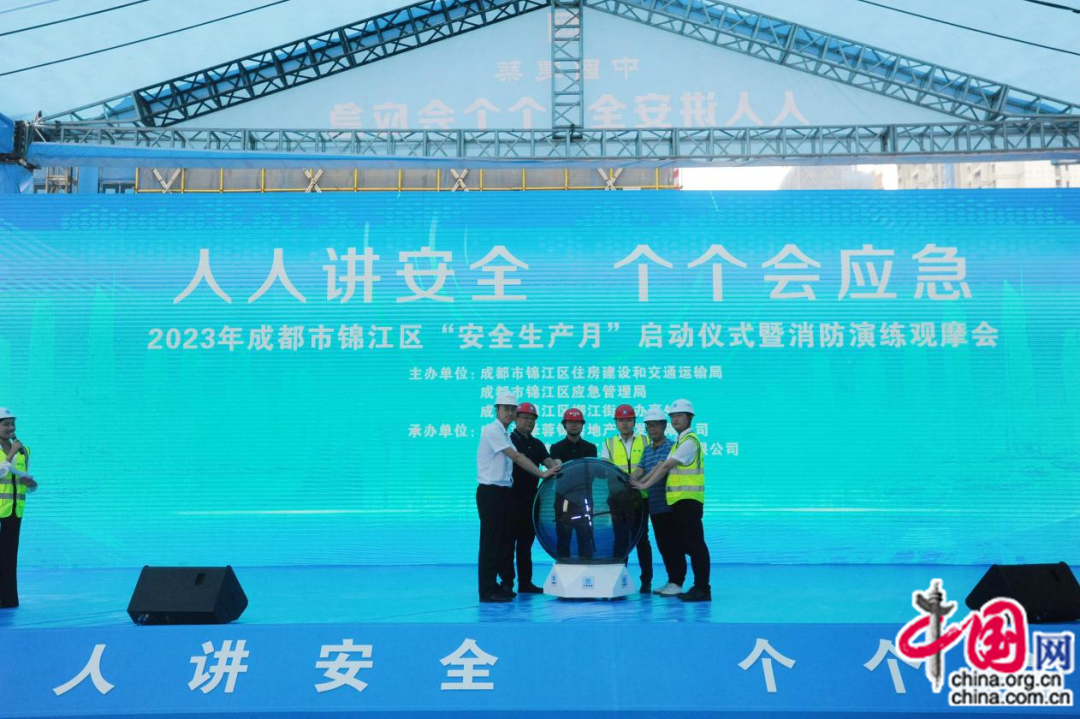 今年6月是第22个全国“安全生产月”,主题为“人人讲安全、个个会应急”。为进一步提升行业领域安全意识和人民群众避险逃生能力,推动安全生产治理模式向事前预防转型,促进行业领域安全生产水平整体提升和安全生产形势稳定,近日,由成都市锦江区住房建设和交通运输局、锦江区应急管理局、锦江区柳江街道办事处联合主办的“2023年成都市锦江区‘安全生产月’启动仪式暨消防演练观摩会”在华润置地锦江悦府项目部工地举行,锦江区区管在建房屋建筑和市政建设工地项目经理与总监理工程师近300人参与。