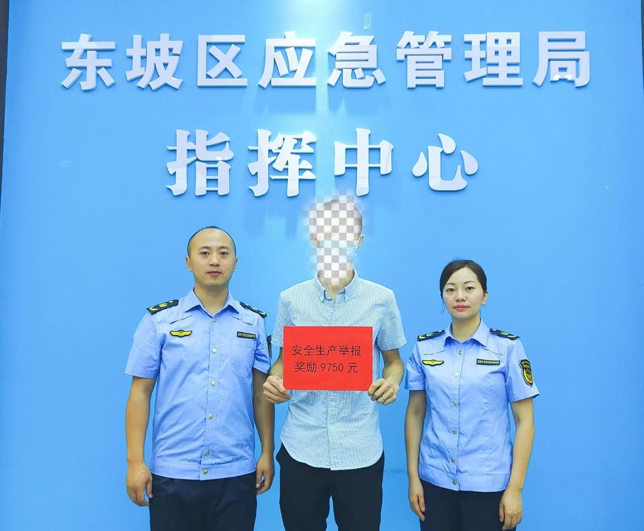 2023年6月15日,眉山市东坡区应急管理局依据《眉山市东坡区安全生产举报奖励办法(试行)》,按照行政处罚金额的15%向安全生产举报人奖励了9750元,兑现了东坡区安全生产举报奖励的第一张“奖票”。