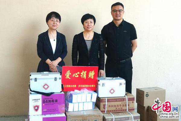 爱心企业家代表,步长制药衡水分公司经理宋广君代表步长药业向该校捐赠了价值6000元的医用物资,衡水市昌盛街小学校领导接受捐赠。