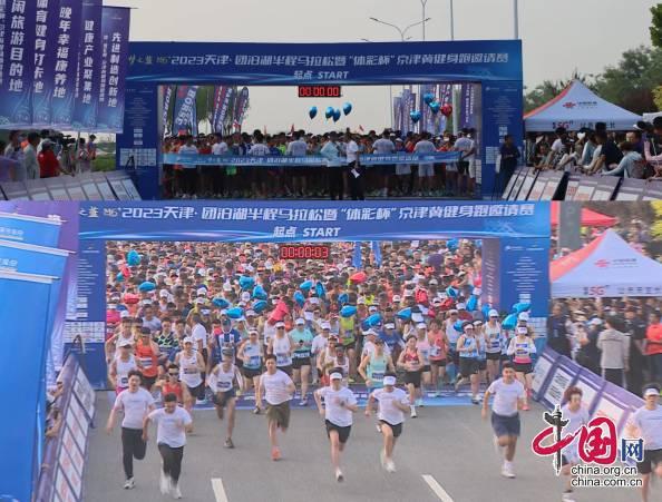 6月18日,2023天津•团泊湖半程马拉松暨“体彩杯”京津冀健身跑邀请赛在团泊湖畔的天津健康产业国际合作示范区鸣枪开跑。天津市体育局局长、党组书记李克敏,静海区委书记刘春雷,区委副书记、区长曲海富出席,沧州市体育局副局长刘海照受邀参加,洋河股份天津事业部总经理朱醒,天津天奥体育产业有限公司总经理胡继东参加开幕式。