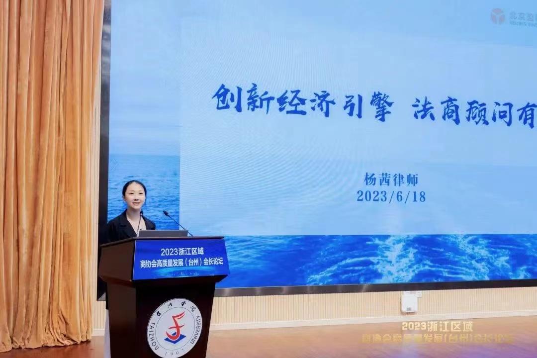 北京盈科(杭州)律师事务所公司法商事务部主任杨茜主任围绕《创新经济引擎,法商顾问有术》进行主题分享,她指出新经济背景下出现了层出不穷的新型商业形态,而法商顾问不同于传统法律顾问,不仅能为企业发展提供解决问题的方案,更重要的是能协助企业规划商业发展路径,在防范法律风险的同时导入商业思维协助企业家探索新型商业模式。