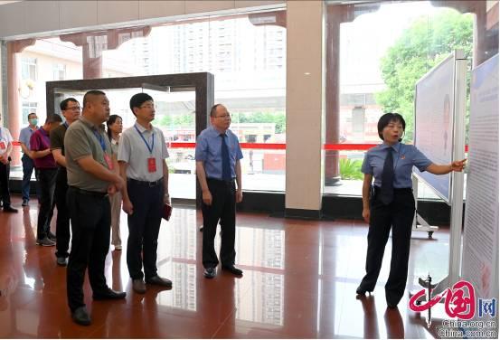 张盛勇一行到荆州区检察院一楼大厅参观优化法治化营商环境工作情况展示