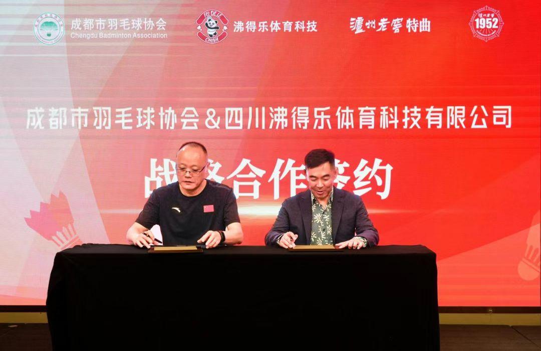 随后,四川沸得乐体育科技有限公司与泸州老窖特曲股份销售有限公司——成都片区进行了战略合作签约,双方将在继续羽毛球领域展开更深入的合作。