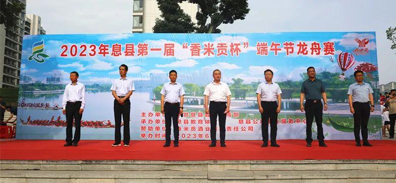 6月22日上午,2023年息县第一届“香米贡杯”端午节龙舟赛开幕。县委常委、宣传部部长,县政府副县长贡少辉,县委常委、办公室主任王伟出席仪式。