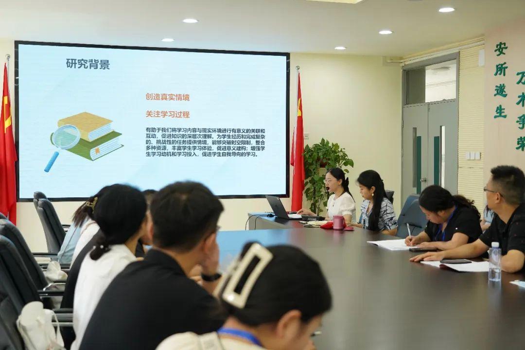 同时,学校骨干教师、信息科技学科教研组长曹灵芝分享其在教育部课程教材研究所主办的“中小学人工智能教育实验研究项目第一届成果交流展示会”上展示的课例与经验。数学学科教研组长,锦江区刘书娴信息化名师工作室成员白芳老师以《走进密铺世界——为学校时光长廊大厅设计铺设方案》为例,分享技术在小学数学项目式学习中的应用。信息技术中心李小玄老师就学校人工智能教育的整体思路与开展情况进行交流,并引导参培教师进行现场交流与讨论。