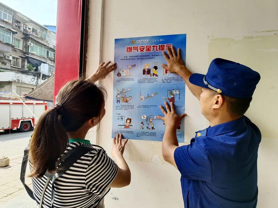 乐至县消防救援大队重点排查使用瓶装液化气的各类烧烤店、大排档、小吃店、农贸市场,以及各类酒店、商住混合体等人员密集场所。针对场所的安全出口、疏散通道是否畅通,厨房用火用气是否规范,油烟管道是否定期及时清洗,电气线路是否符合要求,消防设施器材是否完好有效,厨房燃气报警装置是否安装规范、重点部位防火分隔是否到位,是否存在液化气罐超期使用情况、是否存在擅自改装阀门情况、输气管是否符合要求等情况,全面开展隐患排查。同时广泛张贴“燃气安全九提示”宣传海报,第一时间印制海报“刷屏”了乐至县的大街小巷。
