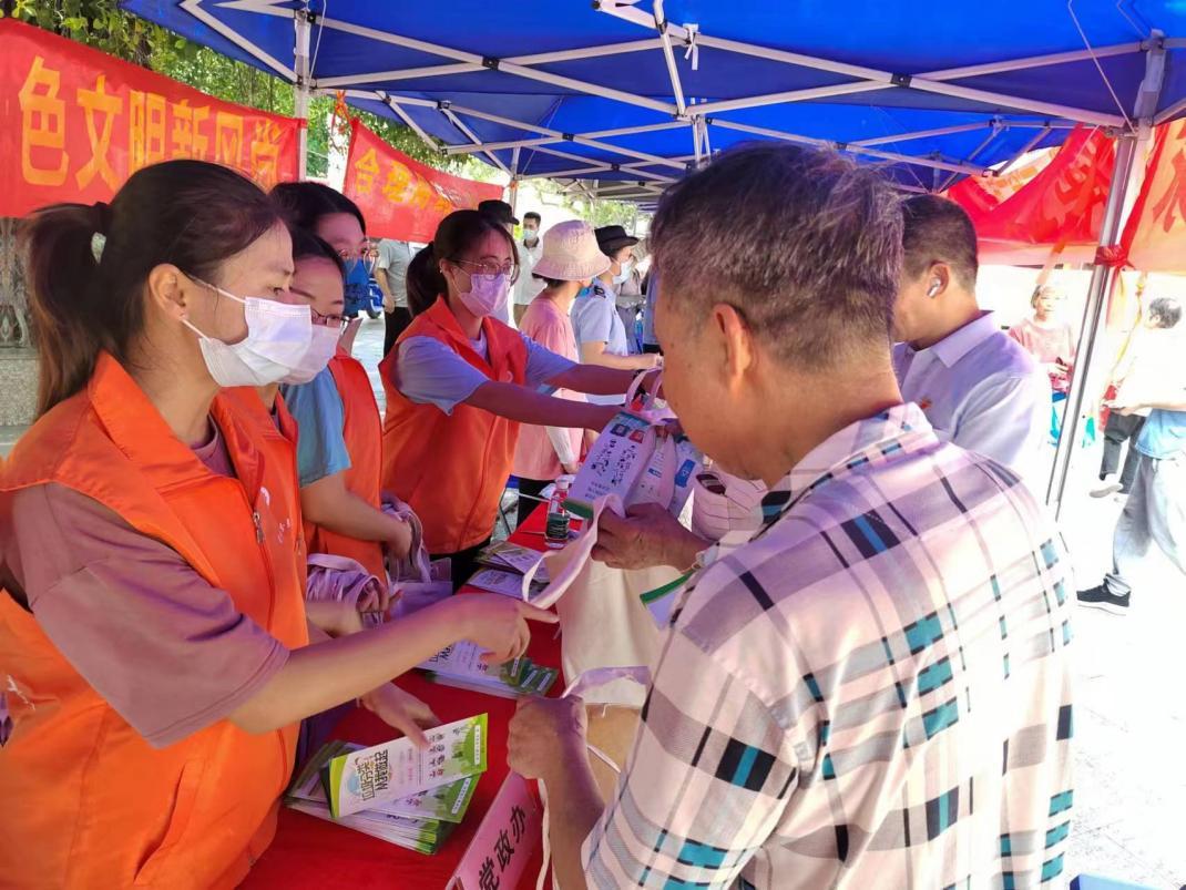 活动中,工作人员为参与现场活动的居民发放宣传折页,普及垃圾分类相关规范要求和分类知识,为居民们举例详解如何区分日常生活中常见的容易错分的垃圾种类,或分享自己如何在日常生活中科学开展垃圾分类,指导居民在家先做好分类投放。