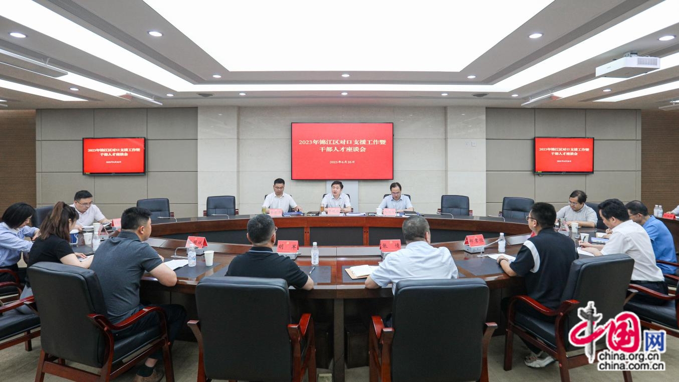 对口帮扶藏族聚居区是中央和省委、市委的重大决策部署,成都市锦江区委区政府历来高度重视,值此第六批对口支援干部人才和第七批对口支援干部人才轮换之际,6月26日,锦江区召开2023年对口支援工作暨干部人才座谈会,锦江区委副书记、区政府区长缪晓波同志出席会议并讲话,锦江区委常委、统战部部长毛高林,锦江区委常委、组织部部长余家洪,锦江区委组织部、锦江区委统战部等29个相关部门、街道的主要负责同志,以及锦江区第六批、第七批对口支援工作队全体队员参会。