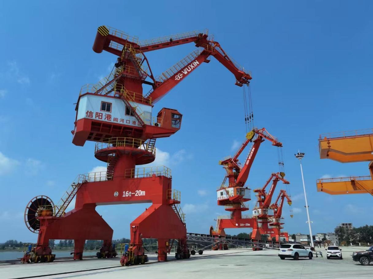 “截止目前,闻河口港区水工结构全部完成,港池疏浚完成50 万 立方米 ,道路堆场完成 12.5 万立方米,生活及生产建筑物,给排水及消防工程,港区工程总体均已全部完成,6 台门座起重机、2 台龙门吊均已安装完毕,已经完成联合调试,航道工程已完成,施工单位汛前已完成自检,项目已于 2021 年完成,并具备运营条件。航道东行最远可到达上海港外交桥码头,中途可转至蚌埠港、淮安新港、徐州港、连云港、新云台扬州港、太仓港6大港口,最近港口3天内可到达,最远7天内便可抵达。”该项目负责人介绍说道。