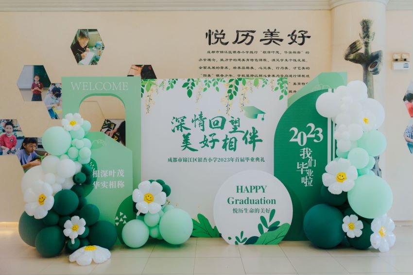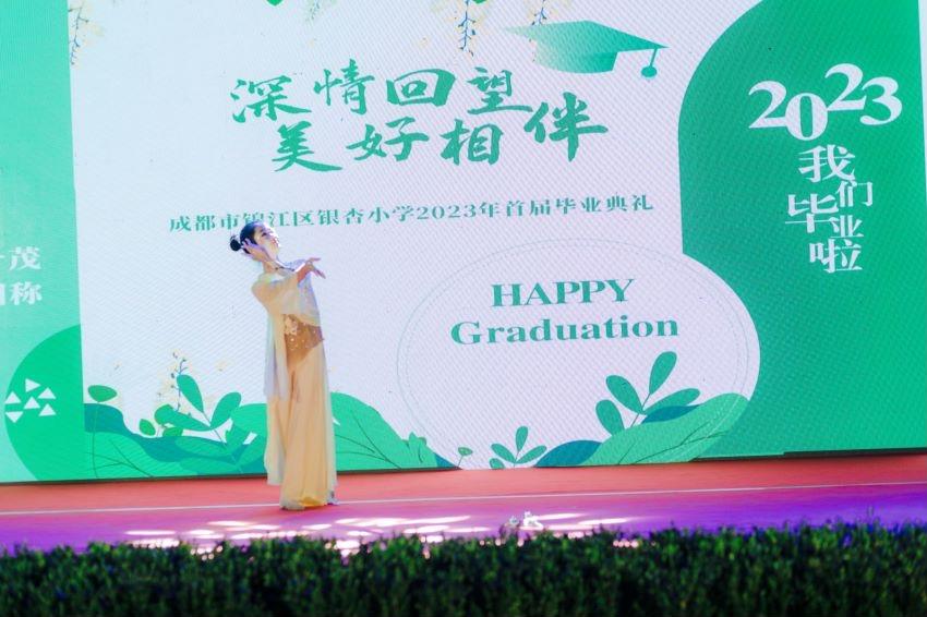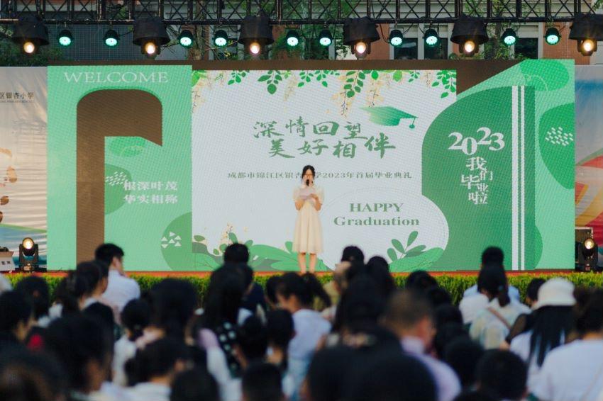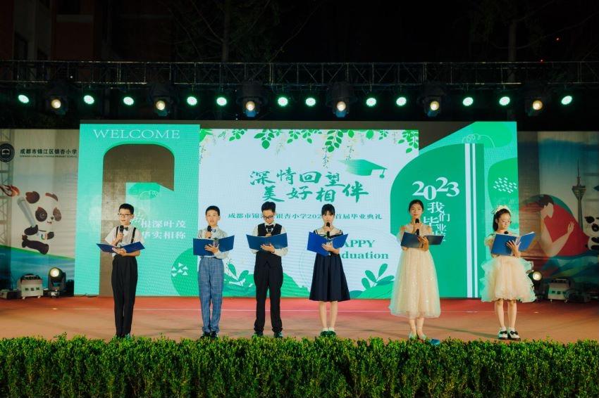 6月30日,成都市锦江区银杏小学迎来了自2017年建校以来的首届学生结束六年小学生活的毕业季。为了庆祝孩子们作为第一批“银杏果果”在校园度过丰富精彩的小学生活并顺利毕业,纪念学校与学生和家长共同成长、共同发展并取得累累硕果的美好岁月,祝福学校和每一个“银杏人”在未来的奋斗路上,都能在不断学习和努力中取得更多、更大的成果,学校围绕“深情回望 美好相伴”的主题,深入落实《未成年人保护法》《家庭教育促进法》的精神宗旨,在成都市锦江区社区教育学院的关护下,举行了隆重而温情2017级毕业典礼。