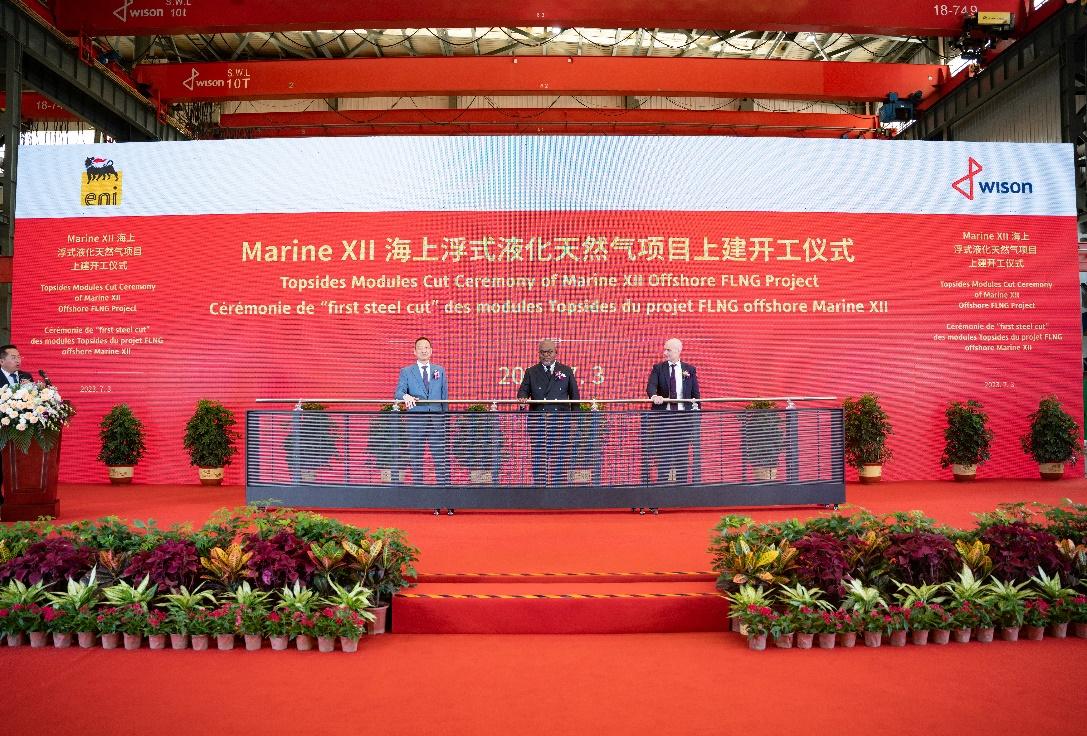 本次开工的上部模块将用于意大利油气巨头埃尼集团订购的浮式天然气液化装置。设施建成后将部署于刚果(布)12区海域的大型气田,离岸约50公里,水深30米~50米;满负荷状态下,每天可从附近的气田接收约1076万立方米天然气,用于生产、储存和出口,LNG(液化天然气)年产能达240万吨,在全球FLNG(浮式天然气液化)年产能排名中位列第四。