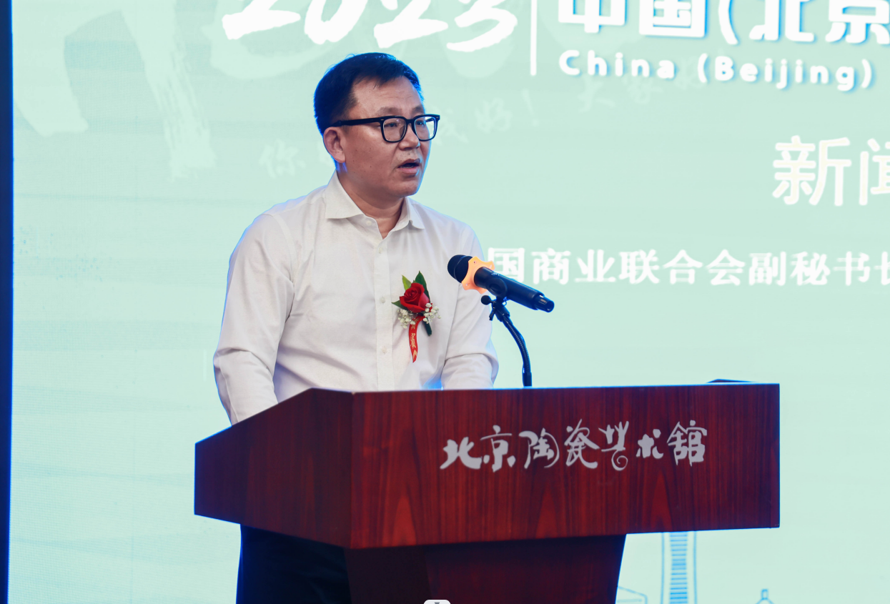 中国商业联合会会采购商分会常务副会长陈长江,中国陶瓷工业协会常务副理事长吴越申,中国轻工业联合会新闻处处长张永利,中国传媒大学文创协会会长张金祺,北京陶瓷艺术馆馆长陈美霞,展览会组委会办公室副主任夏昆,展览会组委会办公室副主任、北京陶瓷艺术馆副馆长聂张成等出席了2023中国(北京)国际精品陶瓷展览会的新闻发布会。