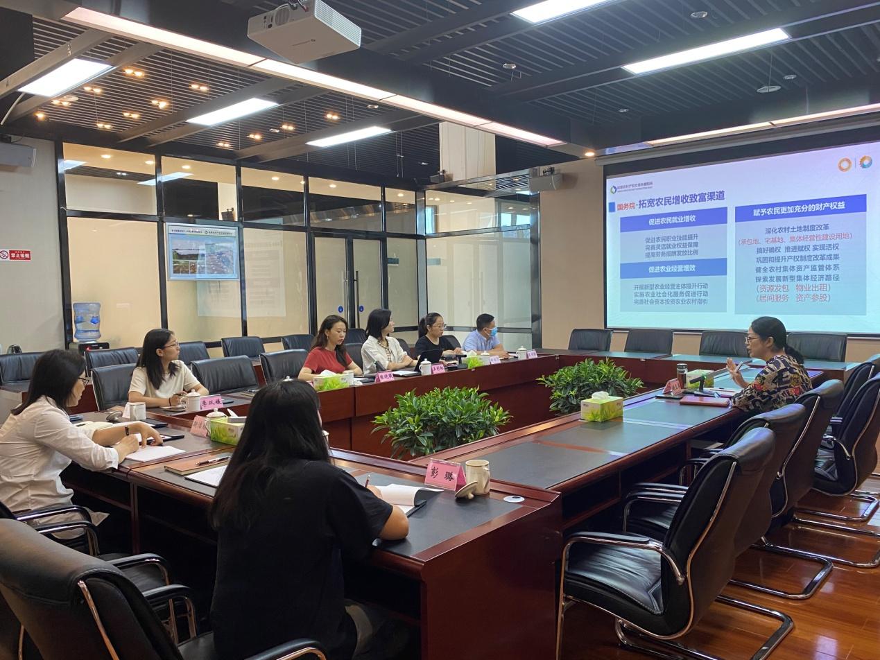 在成都农交所德阳所,该所总经理谢玉萍向考察组一行介绍了成都农交所德阳所成立背景、政策支持、交易体系、业务创新以及推动城乡融合发展、助农增收等工作情况。