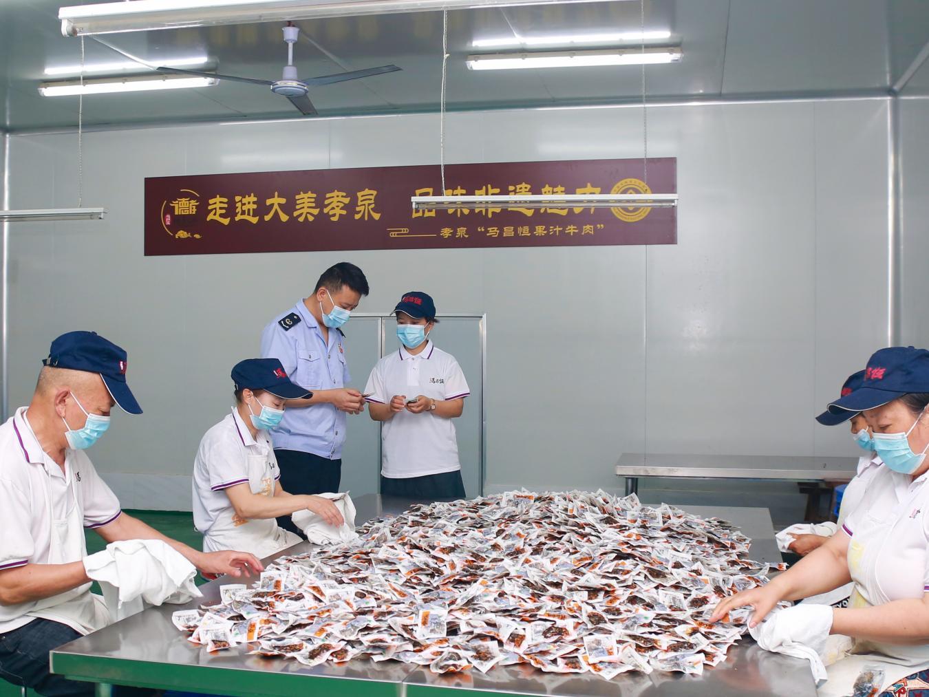 马昌恒清真食品有限公司在小镇上已经经营了几十年,其特色商品,麻辣香酥的果汁牛肉受到广大食客钟爱。正值暑期,小镇上的游客日益多了起来,果汁牛肉也迎来一波销售热潮。