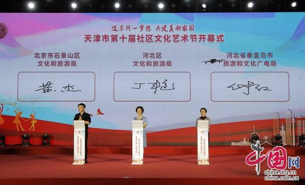 天津市文化和旅游局、河北区人民政府联合主办的天津市第十届社区文化艺术节于7月8日晚在北宁公园开幕。天津市文化和旅游局副局长、一级巡视员左坚,天津市城市管理委员会二级巡视员翟千德,天津市民政局副局长张清玲,天津市文学艺术界联合会党组副书记、专职副主席施琪,河北区委副书记、区长戴雷,河北区人大常委会主任闫浩,河北区政协主席李秋增出席开幕式。北京市石景山区、河北省秦皇岛市及天津市各区文旅部门,河北区相关部门领导及企业家代表参加活动。