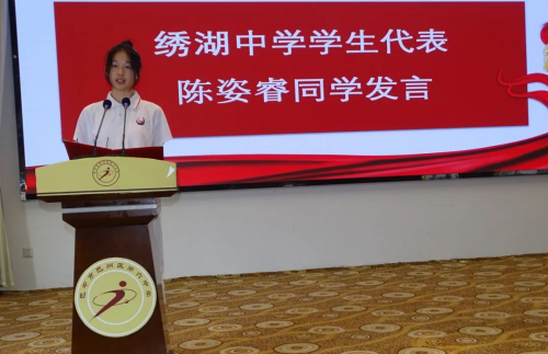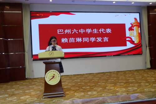 六中学生代表赖苗琳在发言中对绣湖中学师生的到来表示热烈的欢迎。她向客人们重点介绍了巴中的诗意山水、厚重的历史和光辉的红色文化。