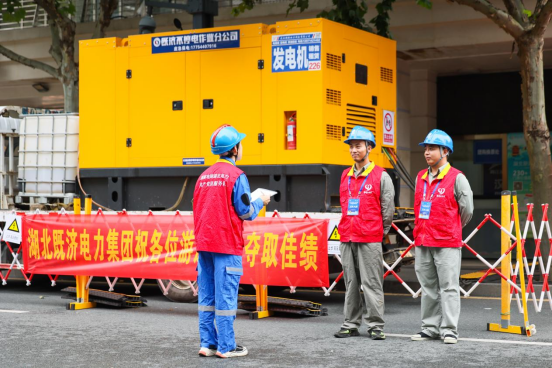 “我们的任务是确保开、闭幕式供电的万无一失。”国网武汉供电公司既济配网不停电作业分公司保电班班长王刚介绍。在现场保电的“鄂电红马甲”在高温中全程值守,一刻不敢放松,时刻关注活动现场用电情况,全力以赴为活动保驾护航。