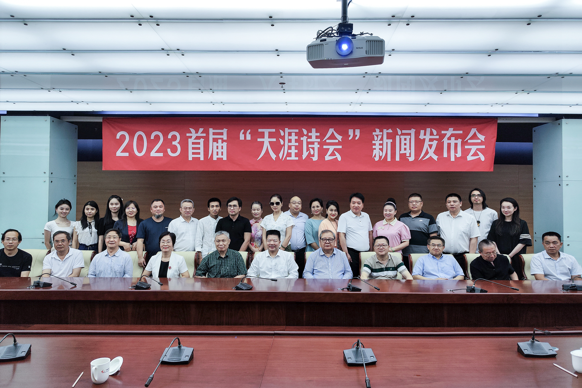 中国作家协会诗歌委员会主任吉狄马加,《诗刊》社主编李少君,鲁迅文学院常务副院长徐可,中国诗歌学会党支部书记、常务副会长兼秘书长王山,《解放军文艺》原主编、鲁迅文学奖获得者刘立云,中国报纸副刊研究会名誉会长、艾青文学院院长曾凡华,中国林业作家协会主席杨海蒂,海南省文联作协党组书记、省文联主席夏斐,海南省文联秘书长贾明慧,三亚市人民政府副秘书长张蔚兰,三亚市文联党组书记、主席孙耿,原文化部教科司副司长、中国艺术研究院梅兰芳研究中心主任、剧作家吴开英,中华文化促进会文化装备产业工作委员会副主席的庐,词作家、文化研究员王生宁,歌唱家顾莉雅,中华诗词学会企业家工委会副主任兼秘书长班班,中国人民大学世界民俗文化研究所所长遂岩,中国乡村发展协会理事、北京杏林春雨公益基金会执行理事长陈艳,以及陈波来、阎晓明、樊艳华、王鸿章、李艳平、马泽平、苏笑嫣、蒋在、刘雅阁、梁小兰、蔡英明等嘉宾、诗人代表30余人出席活动。本次新闻发布会由《诗刊》社副主编霍俊明主持。