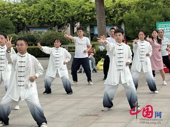 在义诊开始前,郏县中医院的医务工作者为现场群众表演了健身气功八段锦,引来了众多周围群众观看,有的跟着一起练起来。