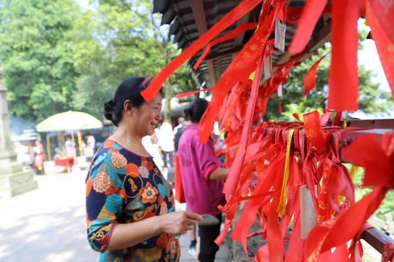“今年的老峨山景区‘六月六’朝山会活动丰富、体验感更佳,将有九大项目给游客带来全新的幸福体验。”丹棱县文旅公司副总经理刘林介绍,与以往不同的是,今年朝山会在朝山仪式、敲鼓进山、民俗表演、评书等活动基础上,新增了五福门打卡集章活动,老峨山景区在在德福门、康宁门、长寿门、富贵门、安祥门五个地点为游客准备了一场充满乐趣的打卡盖章活动。游客参与活动后,只需打卡并盖章,即可换取精美礼品。
