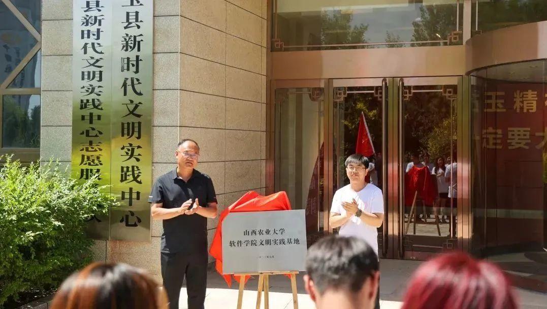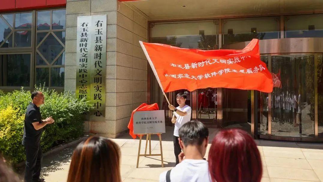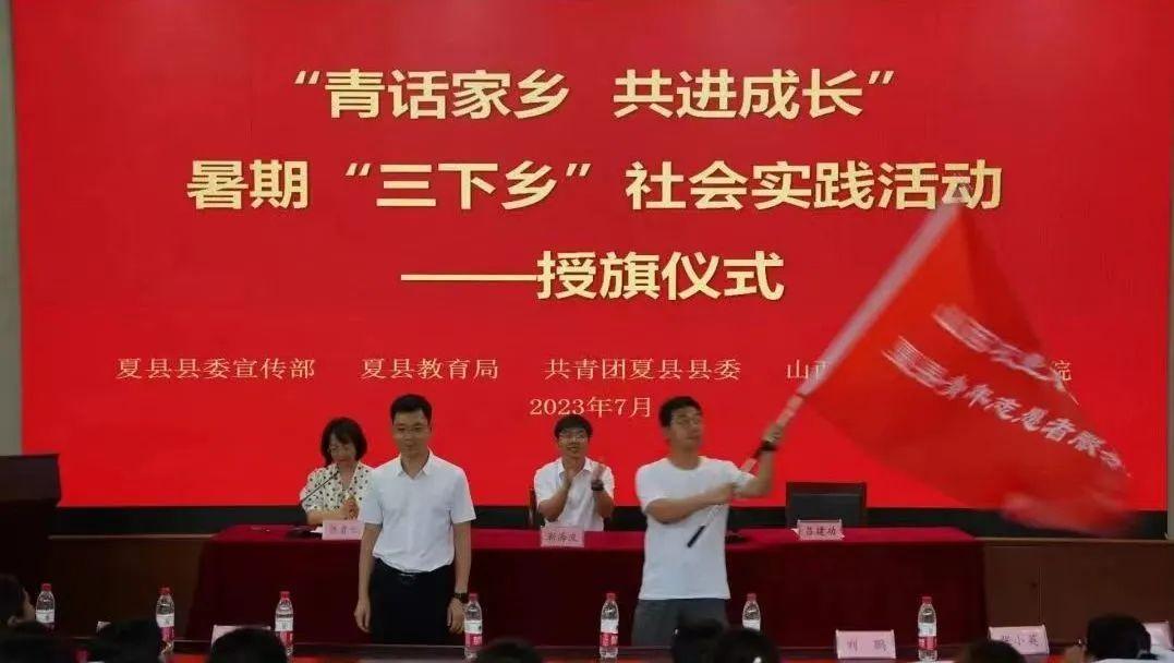在夏县新时代文明实践中心,山西农业大学联合夏县县委宣传部、县教育局、团县委举办了“青春兴晋”山西农业大学赴夏县暑期“三下乡”社会实践活动,在夏县团委组织下,山西农业大学实践队与其他高校参与夏县“青春兴晋”大学生“返家乡”活动的百余名学子共同加入夏县新时代文明实践中心志愿服务队。夏县团县委书记吕建功向山西农业大学夏县青年志愿者服务分队授旗,向志愿者传递团队的使命和责任。山西农业大学软件学院党委副书记靳海波希望软件学子在夏县新时代文明实践中心志愿服务队的带领下,发挥新时代大学生志愿服务的作用,补充当地志愿服务队伍的力量,将奉献、友爱、互助、进步的志愿者精神发扬光大。