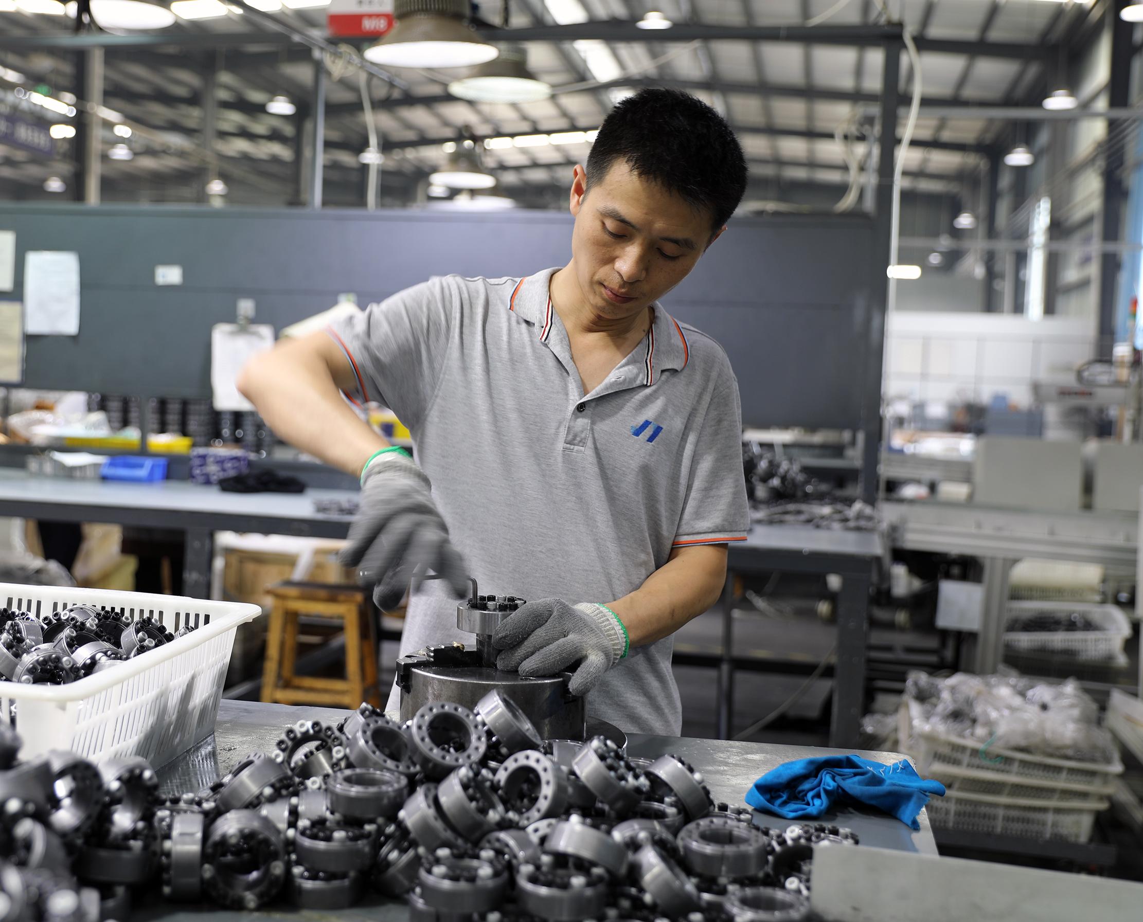 瑞迪佳源员工正在抓紧生产机械零部件