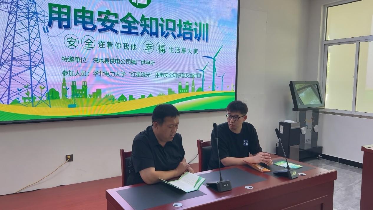 为深入贯彻党的二十大精神,学习习近平总书记关于青年工作的重要思想,积极践行“五育并举”理念,着力推进“三全育人”体系。华北电力大学电力工程系“红星流光”社会实践队于2023年7月17日走进河北省保定市涞水县山南村,在国网涞水县供电公司镇厂供电所技术人员的指导下,开展用电安全知识普及宣讲与排查。