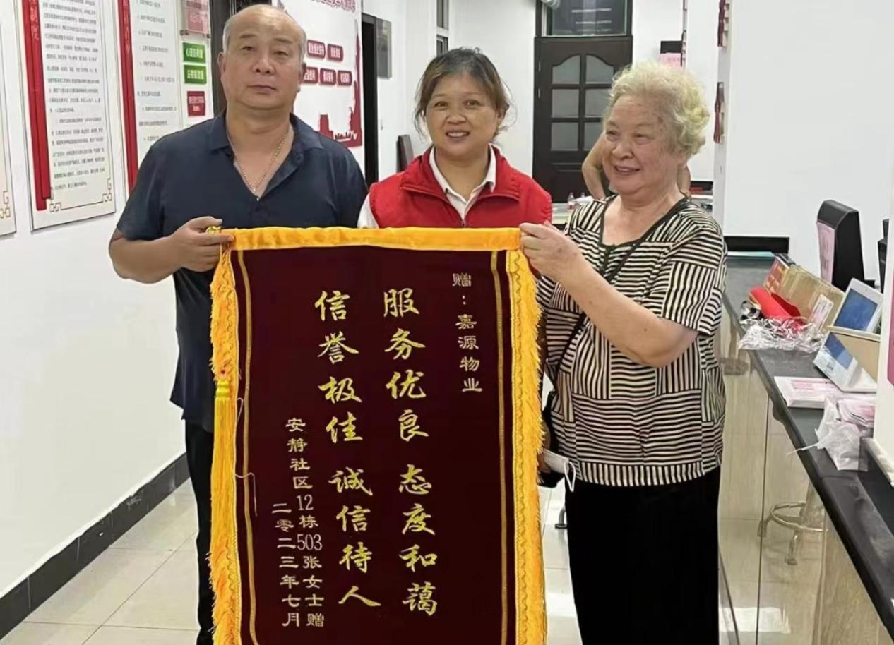 公司红色物业服务中心每周会安排时间,组织片区主管、客服、工程维修人员上门入户,调查走访,了解居民实际需求,定期开展各项有偿维修服务和其他免费服务活动,针对特殊群体、困难户提供免费服务;部分小区提供快递收发免费服务,真正地将服务、实惠送达给居民。根据小区现有状况,开展多种经营业务,新增小区快递货柜、饮用净水站、电梯广告、道闸广告等多业务条线11起,实现自我造血机能。截止6月25日,嘉源红色运营部球场街服务中心共收到业主赠送的锦旗3面,手写感谢信8封;西马街服务中心共收到锦旗2面,手写感谢信7封,红色物业暖心服务以深入人心。