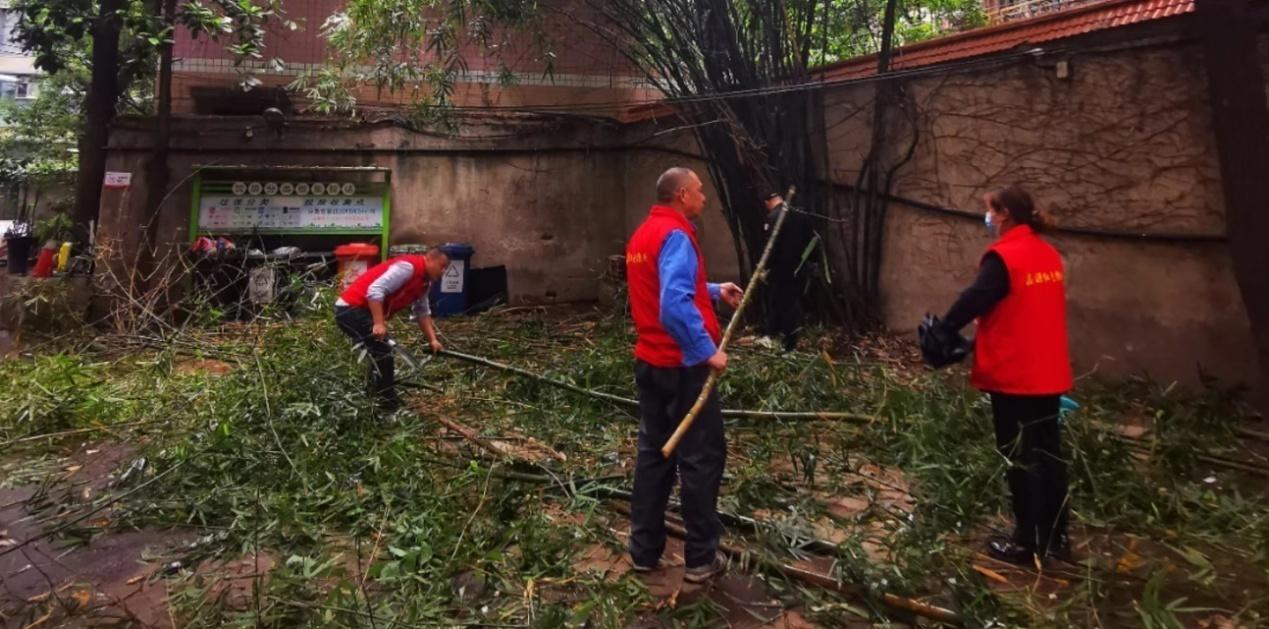 2023年5月1日,嘉源球场街红色物业正式进驻金川阁小区,业主们提出了很多建议和意见,其中大家最为关心的就是小区绿化,最早一批老业主为了美化小区环境,种下的诸多樟树已经长得十几米高了,有的树枝已经伸入到业主家中,有些高处的树枝因为营养无法供应,已经枯萎,枯枝时常砸到小区的车辆,造成了严重的安全隐患,听到此事的易经理立即向园林部门打报告,批准后,易经理一马当先,带领红色物业工作人员,撸起袖子冲在最前面开始整枝清理,小区的业主也纷纷伸出援手一起干。很快阳光透过树枝照进了小区路面,园林局的车辆进入到小区拉走了杂物,解决了居民十几年的老大难问题。业主高兴的心情无以言表,纷纷向红色物业的工作人员点赞的。