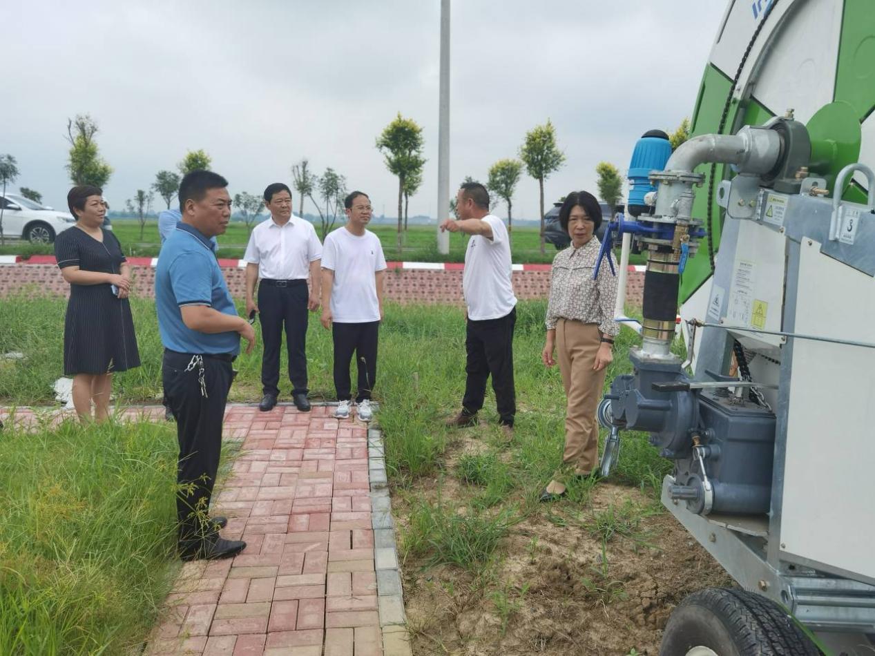王道东一行实地查看高标准农田示范区项目建设、运行情况,并详细听取相关负责人对资金投入、设施建设、运营维护、土地产出率和农业综合生产等方面的汇报。