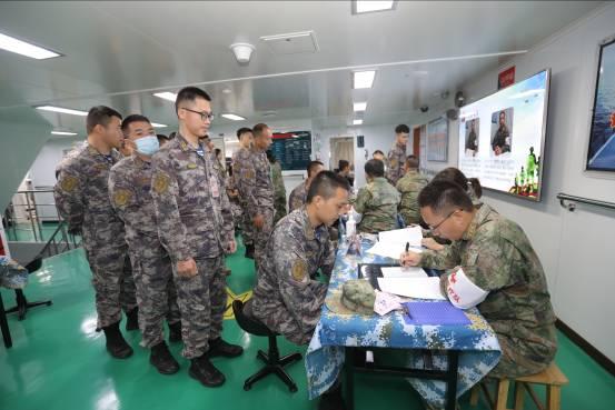 航行一路,保障一方。在茫茫南海上,巡诊医疗队全体人员披星戴月,上舰艇、登岛礁,哪怕烈日当头,哪怕劈风斩浪,也要克服重重困难,坚持践行“不落一个兵”的庄严承诺。