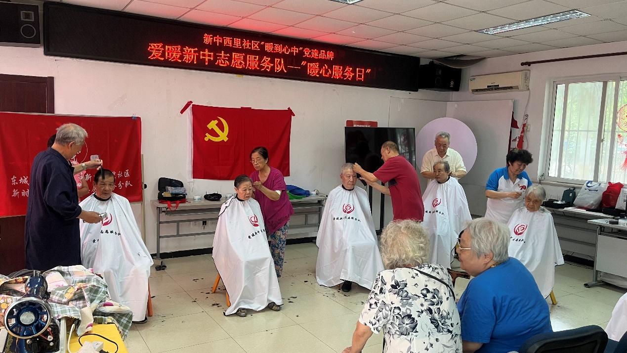 在随后的现场服务中,近百名居民享受了免费的理发、中医查体、推拿按摩、缝纫织补等服务,这些服务都是爱暖新中志愿服务队来组织提供的,他们不怕劳累、不计报酬,冒着酷暑,热情奉献,为大家带来了邻里间最真诚暖心的服务。“暖心服务日太好了,为民服务政策都真真实实用在了老百姓身上,我们生活在新中西里社区真是幸福!”参加活动的居民都赞不绝口。