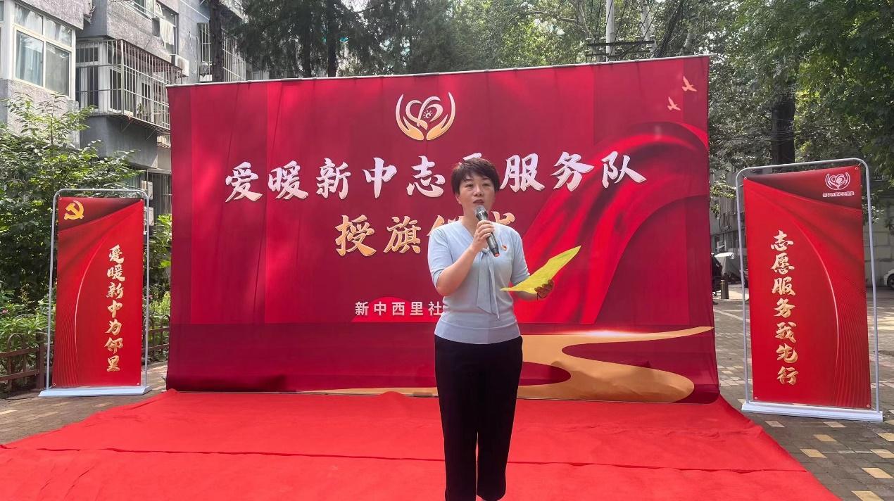 开幕仪式上社区党委书记王华介绍了新中西里 “暖到心中” 党建品牌工作的总体安排,对爱暖新中志愿服务队热心参与社区公益事业的善心表达了真诚感谢。