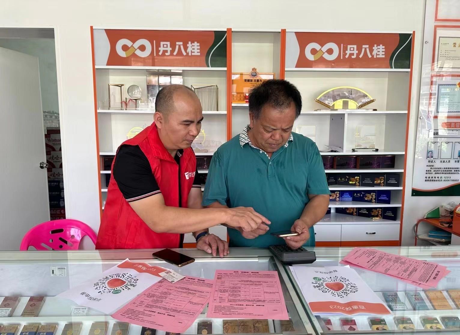 同时该店为中国农业银行餐甲村助农取款服务点,提供多项便民服务。当天,为更好提供便民惠民服务,华安保险德保分公司到开业活动现场,在“丹八桂”终端店便民服务点,为村民现场宣传办理百色订制普惠性商业补充医疗保险(下称“百惠保”)。该保险为百色市人民政府指导,参保人群为百色市基本医疗保险参保人与百色市民,主推“76元保一年,最高300万保障”。现场,工作人员耐心向村民解说该保险“参保不限年龄病史“”覆盖特药增至30种”等保费低、门槛低、覆盖广、保障高的特点,并讲解参保及理赔申请方式流程。(广西德保县烟草专卖局 黄斯曼/文)