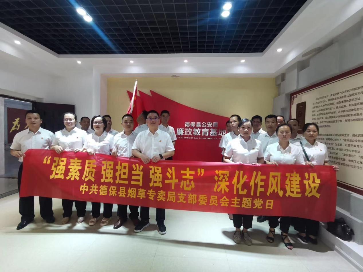 为深入学习贯彻习近平总书记关于作风建设的重要论述,深化队伍作风建设。2023年7月26日,广西德保县烟草专卖局党支部组织全体党员到德保县公安局廉政教育基地,开展“强素质、强担当、强斗志”深化作风建设主题党日活动。