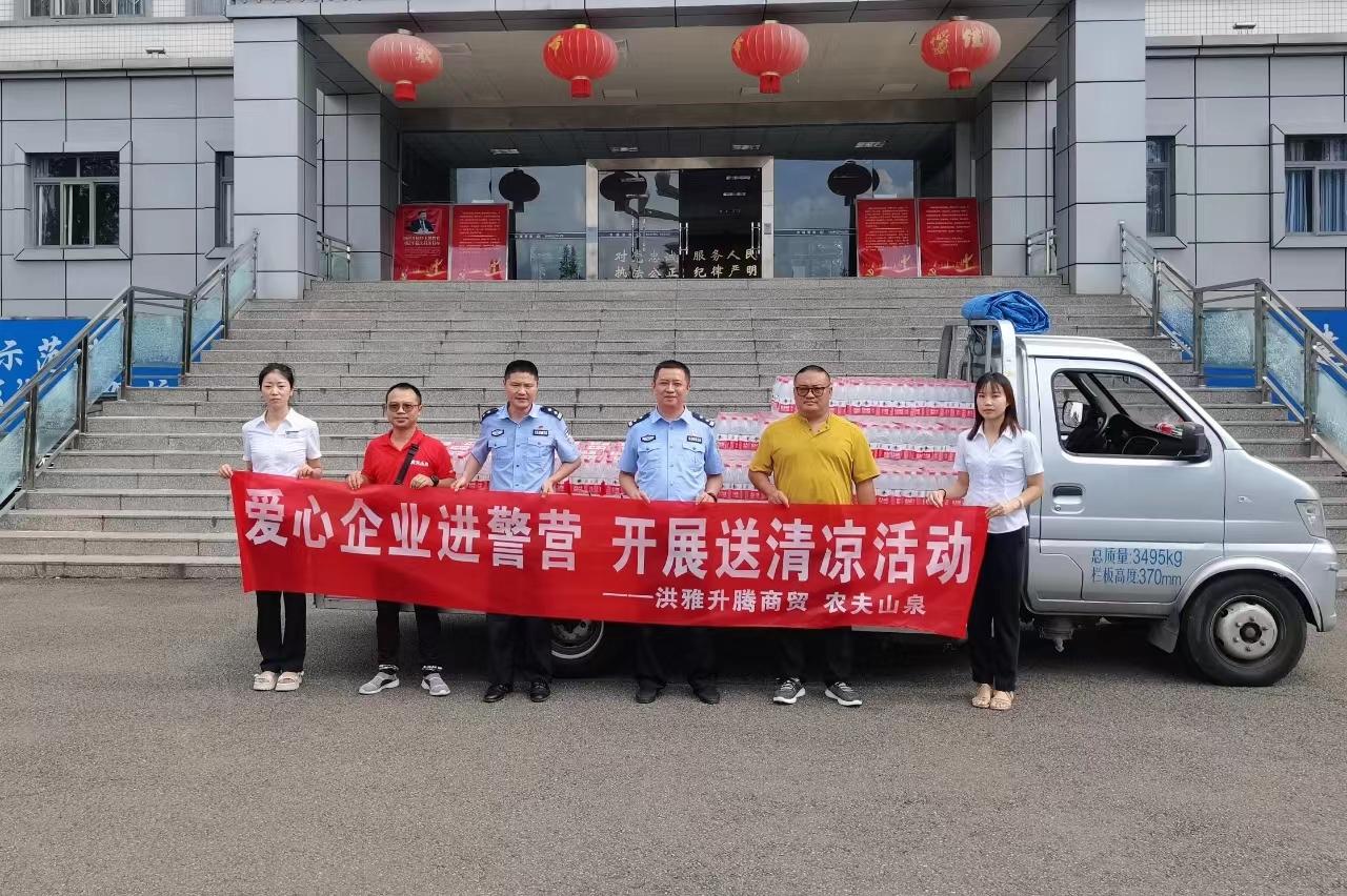 “天气炎热,你们辛苦了!感谢你们守护平安!这是我们的一点心意!”8月5日,洪雅县爱心企业来到洪雅县公安局余坪、洪川、槽渔滩等派出所,将500余箱矿泉水送到一线民辅警手中,用实际行动为基层民辅警送去夏日的清凉和真切的关怀。
