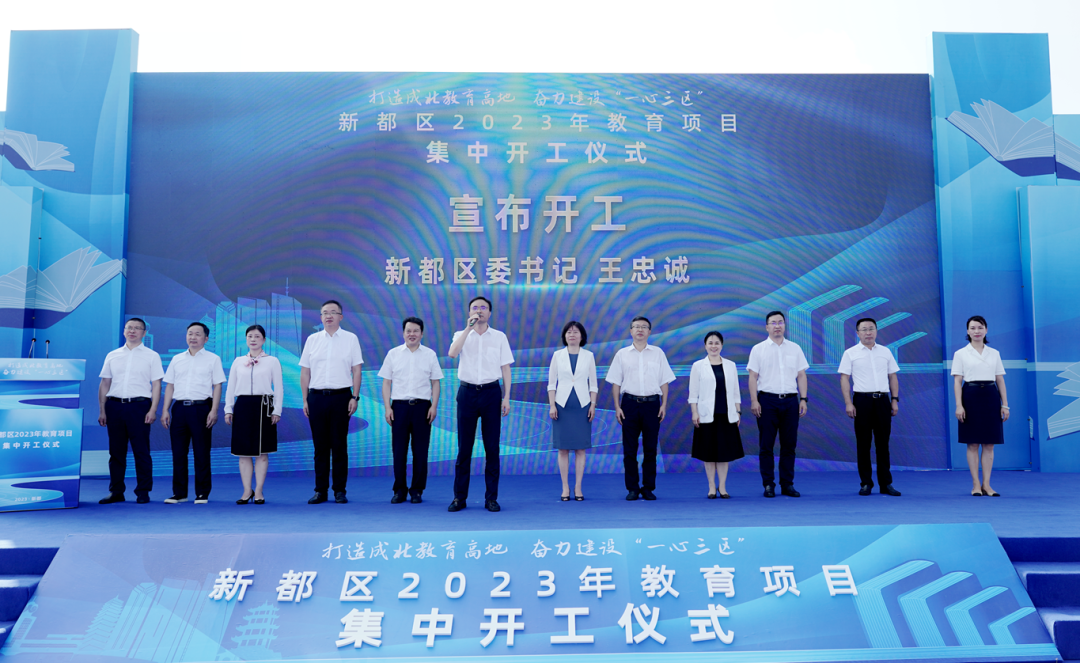 8月9日上午,在新都区成北新消费活力区(廖家湾片区)龙江路小学新都校区工地现场,随着新都区委书记王忠诚同志宣布“2023年新都区教育项目正式开工”,新都区全面启动了16个教育项目。
