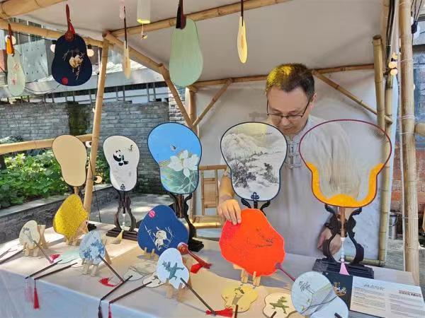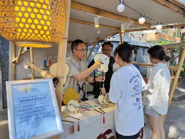 上午10点,在成都市宽窄巷子·井巷子的“遇见天府市集”,一个个文创展位依次排开,形式多样、新潮新颖的各种文创产品吸引了众多市民游客前来欣赏选购。其中,旌阳区的非遗文创产品——德阳潮扇在“遇见天府市集”20号展位进行展示。
