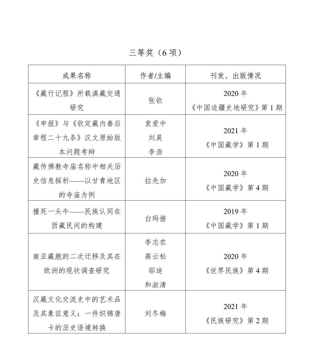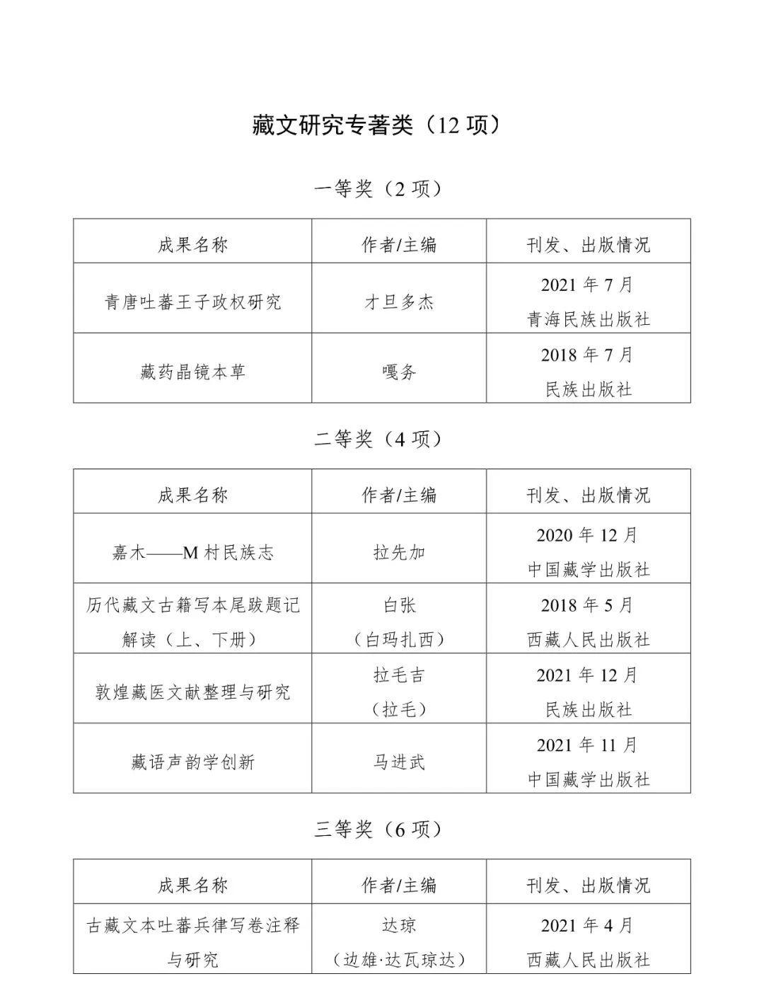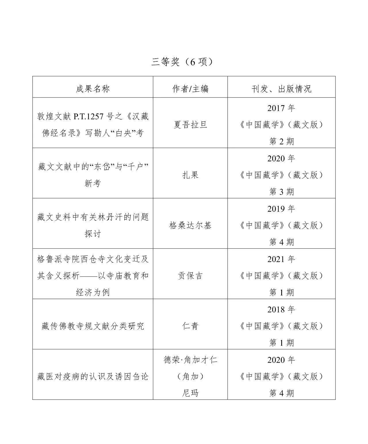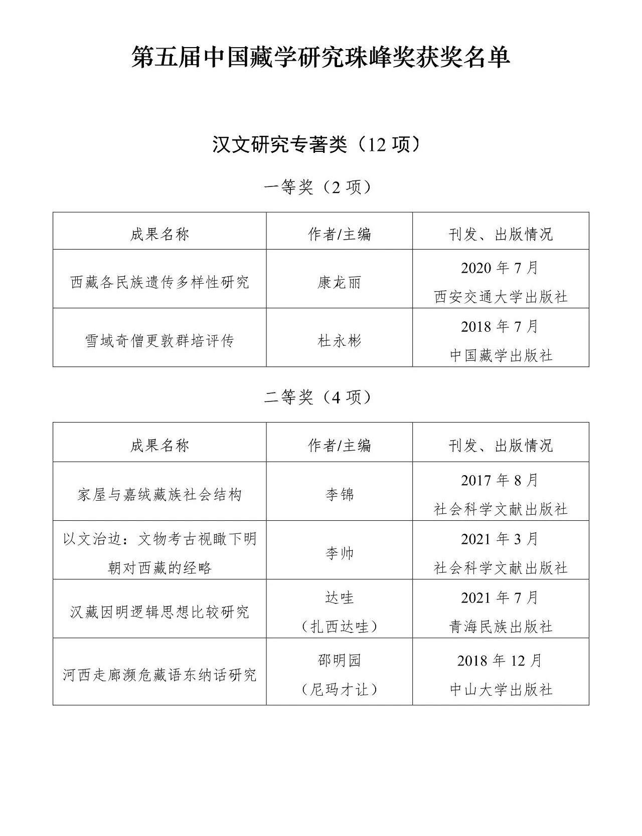 第五届中国藏学珠峰奖获奖名单: