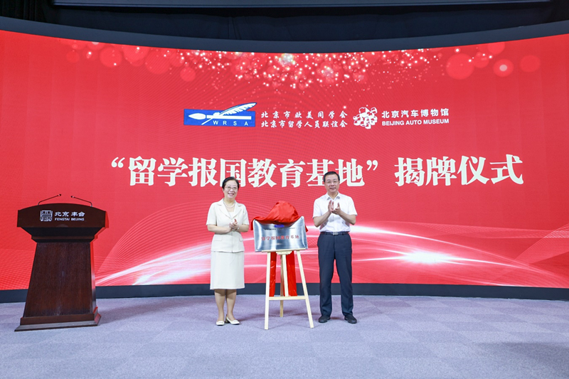 8月8日,北京市欧美同学会举办“中国工业向未来 海归学长进汽博”活动,首都第二家留学报国教育基地落地北京汽车博物馆。市人大常委会副主任、市欧美同学会会长闫傲霜和丰台区委书记王少峰共同揭牌。市政协副主席、市欧美同学会副会长燕瑛主持仪式。