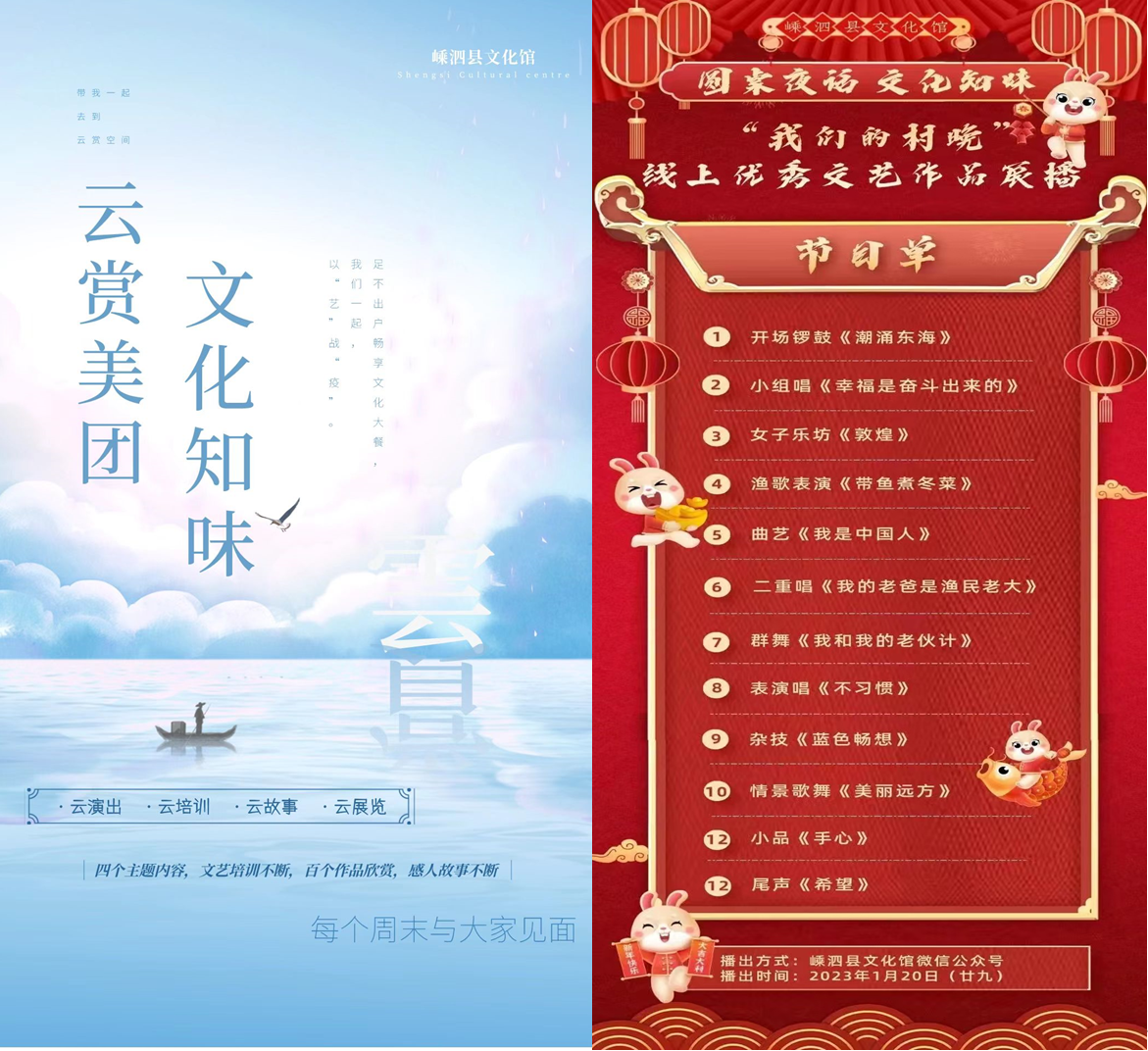 搭建嵊泗渔歌互联网传播平台。依托嵊泗文旅系统微信公众号、微博官网、视频号、抖音号等系列政务新媒体矩阵,推出嵊泗渔歌MV展播、“艺起守护——云赏美团 ”渔歌线上展演、“我们的村晚”线上渔歌作品赏析、渔歌网络小课堂等,开展嵊泗渔歌原创歌词网络征集大赛,并推送嵊泗渔歌项目及传承人宣传推文和短视频。