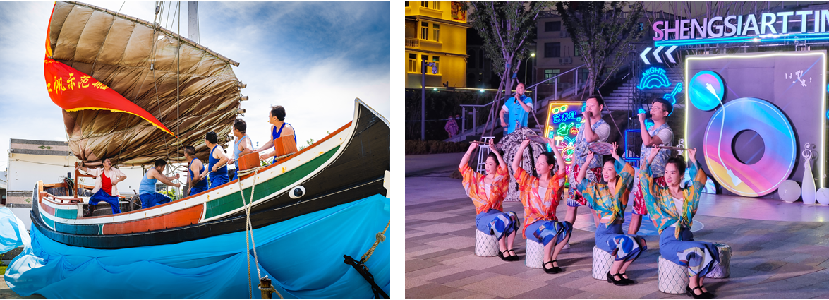 实景演出融入海岛景区。已推出《一块红布片的故事》沉浸式实景演艺项目,投放东海五渔村国家4A级景区,首次将国家级非遗项目嵊泗渔歌融入景区演艺,实现文旅融合项目在嵊泗的落地推广并实现经济效益,提升文化旅游的消费水平,促进群众及游客的文化参与度,延长游客逗留时间,推进景区餐饮、住宿等相关旅游消费提升。