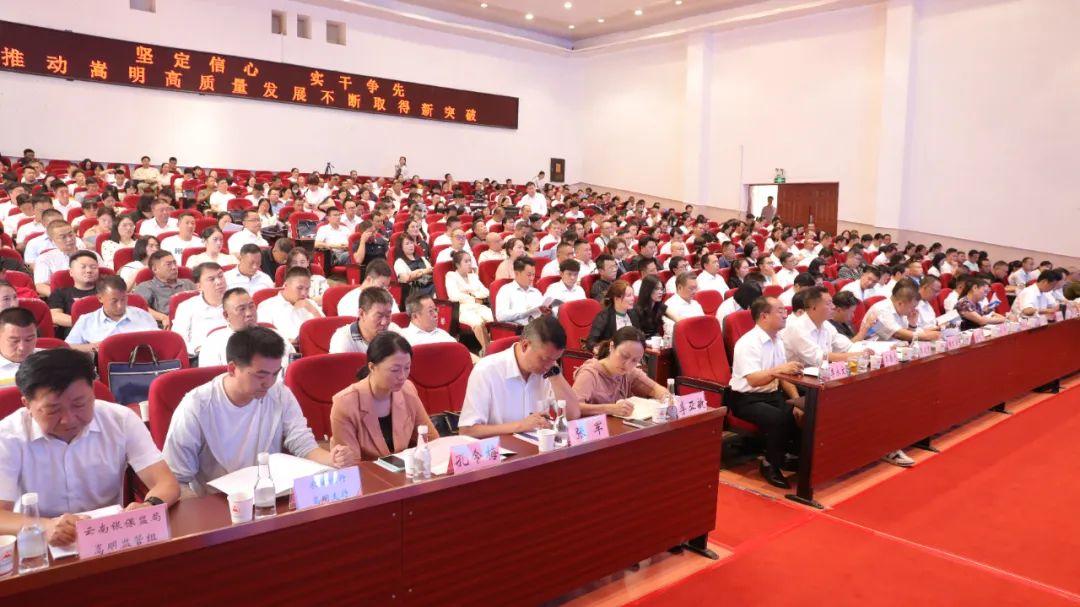 8月17日,嵩明县召开“轻嵩办”动员暨“抢机遇抓产业拼经济”推进大会,全县各行各业349家企业共聚一堂、共话发展、共抓经济,团结动员全县广大企业始终坚定发展信心、提振干事激情,再接再厉、再创佳绩,共同推动嵩明经济在高质量发展轨道上行稳致远。