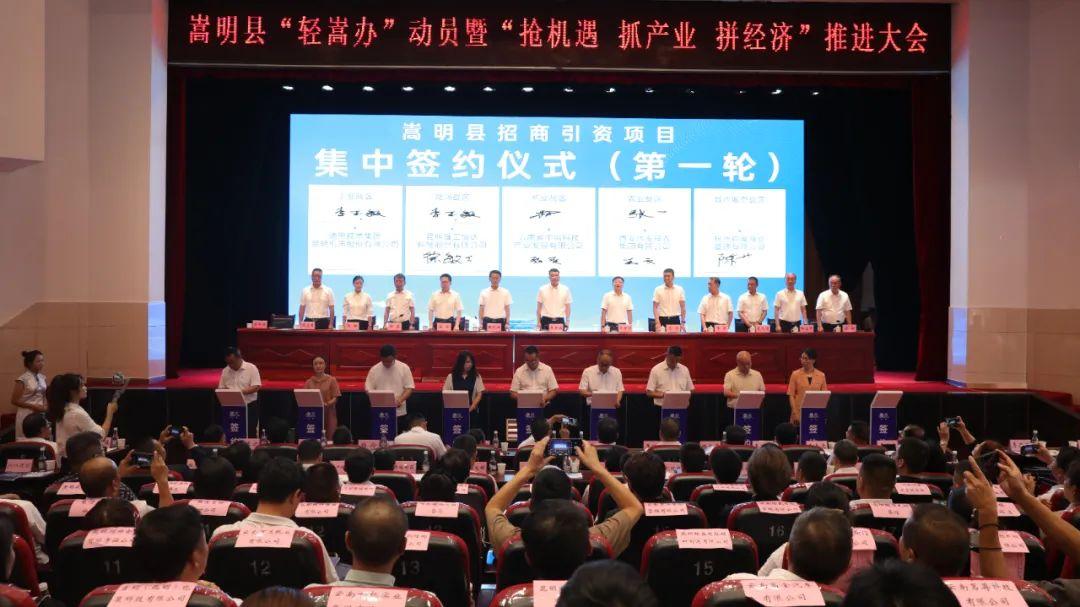 现场,昆明理工恒达科技股份有限公司、通用技术集团昆明机床股份有限公司、云南省中电科技产业发展有限公司、西安水发神龙集团有限公司、杭州钧寓商业管理有限公司代表和嵩明县能源战区、工业战区、机动战区、农业战区、城市服务战区代表签约;南华国科技有限公司、昆明市兴瑞化工设备制造有限公司、云南天远钛基新材料科技有限公司等9家公司代表与杨林经开区签约。共签约重点招商引资项目14个,协议总投资额103.06亿元。