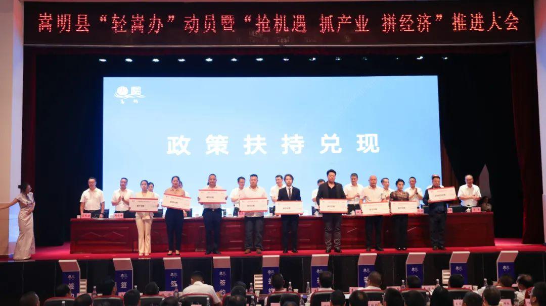 县委常委、常务副县长杨磊宣读了《嵩明县 2023 年上半年招商引资扶持资金兑现通知》,为北汽云南瑞丽汽车有限公司昆明分公司、中汽研汽车检验中心(昆明)有限公司、云南凯瑞特工程机械设备有限公司等34家企业兑现招商引资扶持资金1.1435亿元。