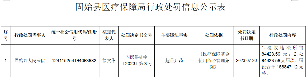 近日,河南省固始县医疗保障局对固始县人民医院存在的超量开药问题作出了相应行政处罚。