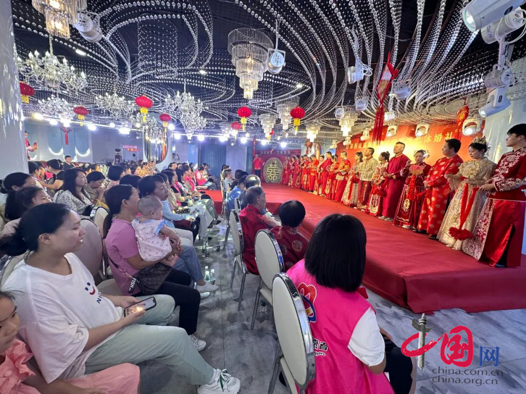 为进一步推动婚俗改革,弘扬文明新风。2023年8月23日,彭泽县新时代文明实践中心、中共彭泽县委宣传部、县民政局、县总工会、共青团彭泽县委、县妇联联合举办的彭泽县首届新时代文明实践“不要彩礼 要幸福”集体婚礼活动圆满举行,10对新人在此缱三生夙愿,结永世姻缘。县政府副县长、县妇儿工委主任李桂英、县委宣传部常务副部长、县文明办主任冯长华,县总工会常务副主席闻其进,团县委书记张浔,县妇联党组书记、主席段霞等出席活动,并与数百名群众共同见证这一美好时刻。
