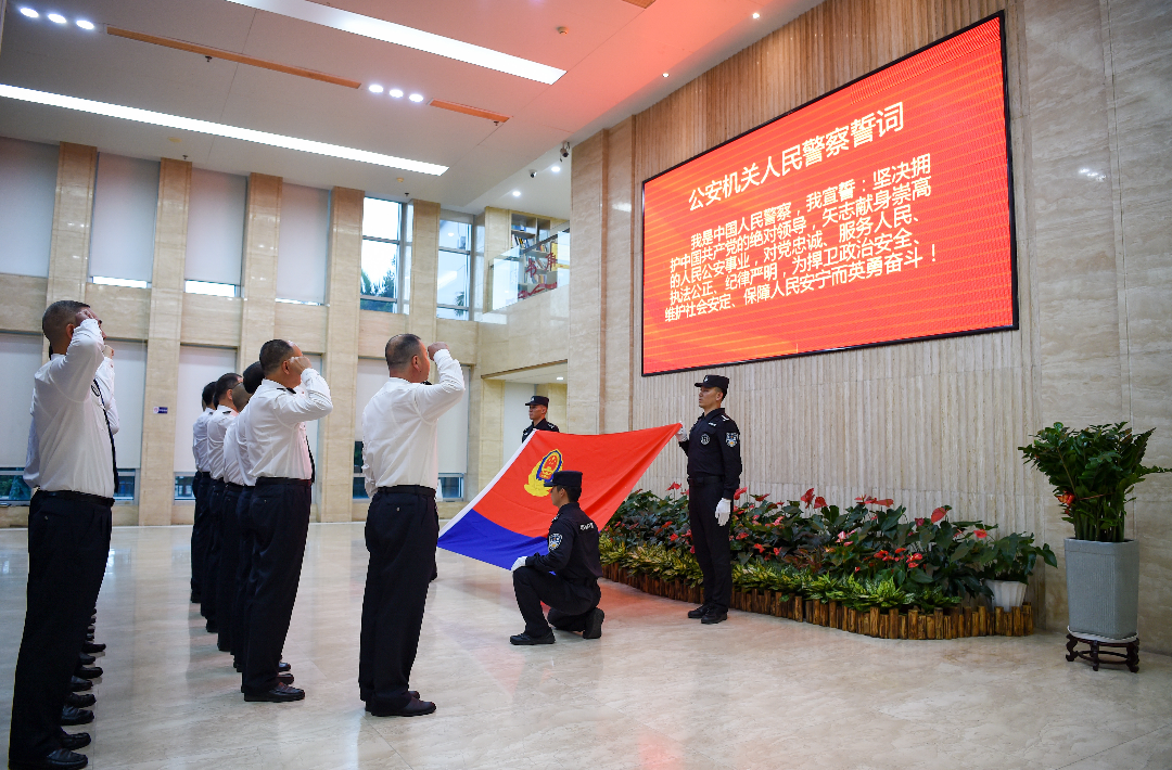 参加晋升警衔仪式人员重温公安机关人民警察誓词