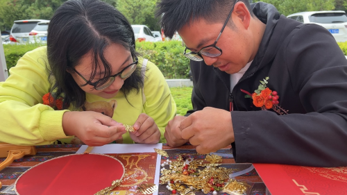在“婚姻驾照技能测试”中,新人通过婚俗改革趣味问答,对婚姻家庭关系和矛盾有了更加理性正确的认识;在“穿引红线祈祷美满”中,新人默契配合完成穿针引线,促进新人甜蜜互动的同时,也为七夕“穿针乞巧”的传统习俗更添一份浪漫;在“共制团扇携手相伴”中,新人共同制作中式合欢团扇,寓意新婚后团团圆圆,幸福美满。
