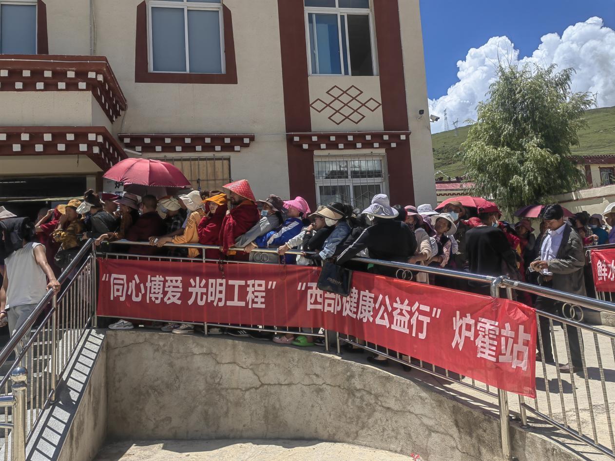 白内障公益检查的消息不胫而走,乡亲们奔走相告,与亲人朋友相互扶持着来到筛查点希望得到治疗。志愿者们耐心引导,医护人员们细致为他们检测视力、检测眼压、排查眼底、筛查白内障发展情况,并为确诊白内障的患者安排到炉霍县人民医院进一步检查、开展手术。